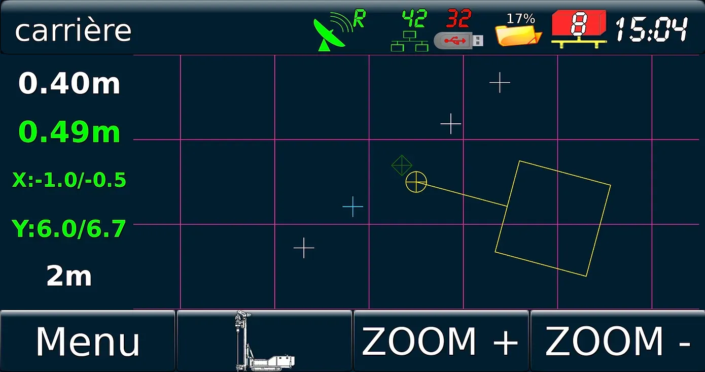 NaviLIM est une application du PocketLIM qui permet à l'opérateur de positionner avec une très grande précision (<5cm) l'outil de forage à l'emplacement prévu du trou à forer que ce dernier soit vertical ou incliné (précision angles <0,15°).