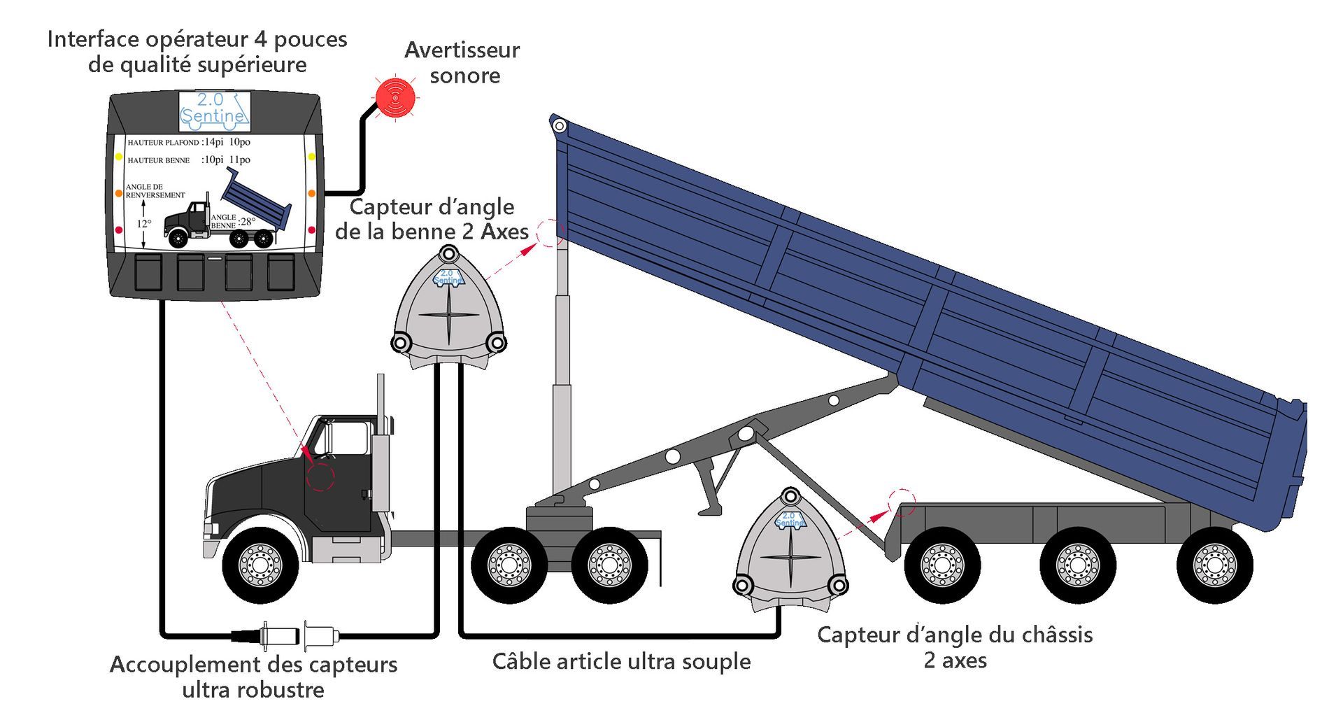 Dispositif de sécurité de bennes basculantes, les systèmes Sentinel sont conçus pour évaluer et prévenir le risque de renversement de camions bennes lors du déchargement.