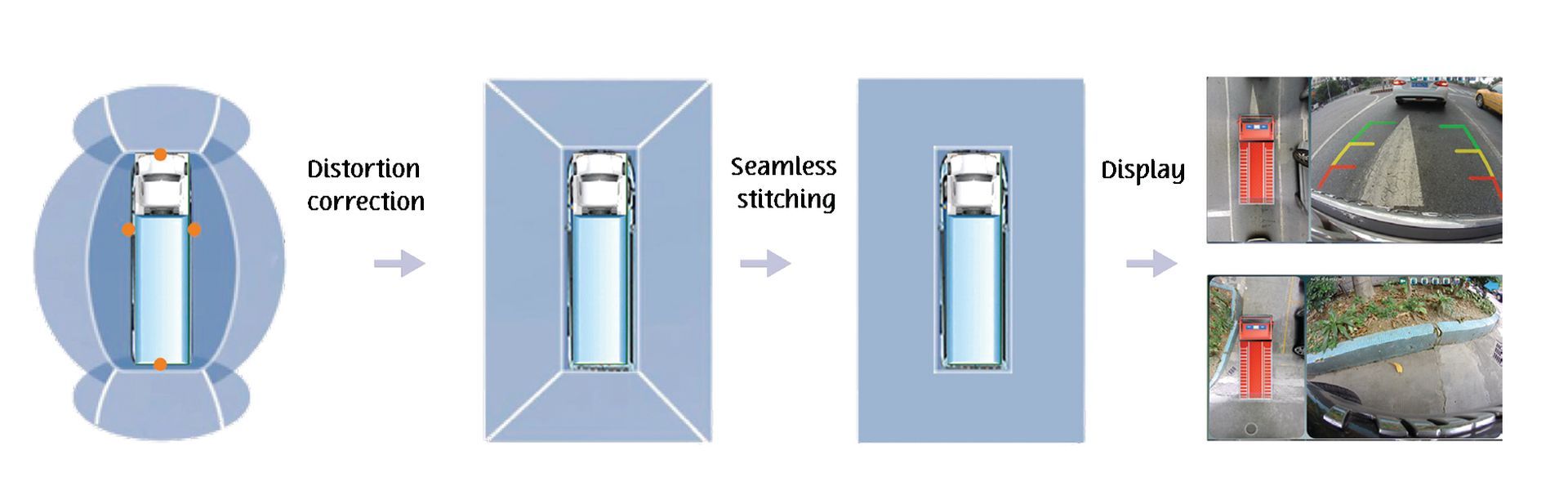 NBS panoramic vision system provides clear rear, front and side view of your driving simultaneously. lt allows a synthesis of panoramic images. The 360° vision displays the real driving scenario and allows you to obtain a real bird's eye view around your vehicle.