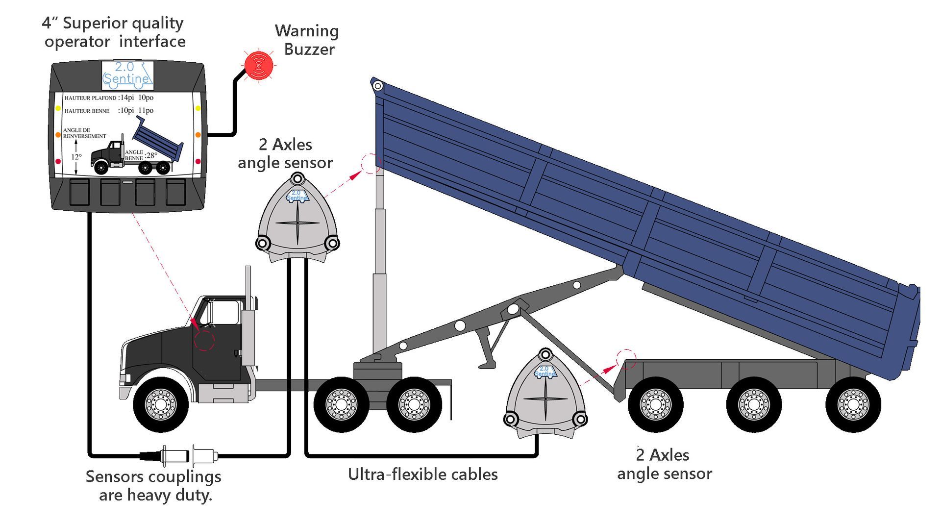 Sentinel warning system for raised dumper are designed to assess and prevent the risk of dumper trucks overturning during unloading.